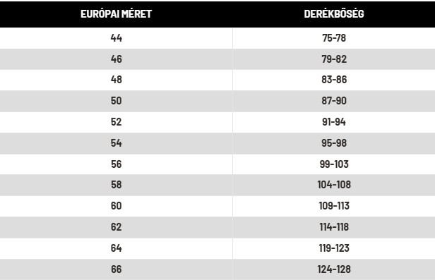 – nagyobb igénybevételnek kitett részeknél alkalmazott TABIFLEX stretch technológia garantálja a szabadabb mozgást
