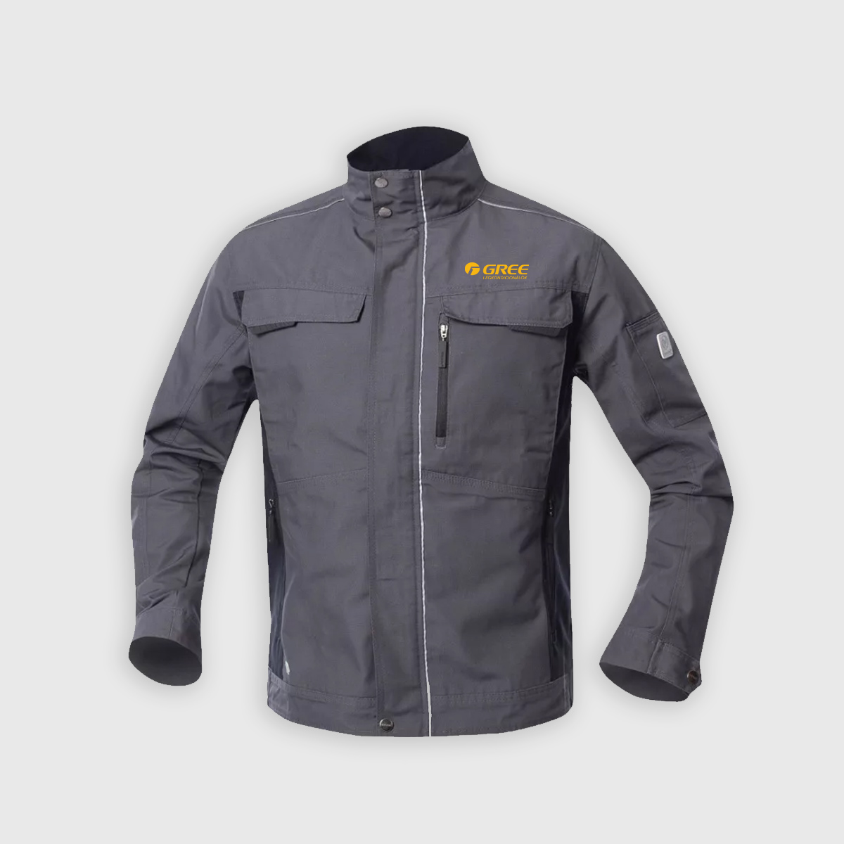 – 2 nagy mellzseb, tépőzáras hajtókával, 1 cipzáras mellzseb, 2 tágas rejtett zseb, cipzárral, a bal kabátujjon ceruzazseb