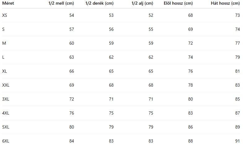 – méretezés: XS-3XL